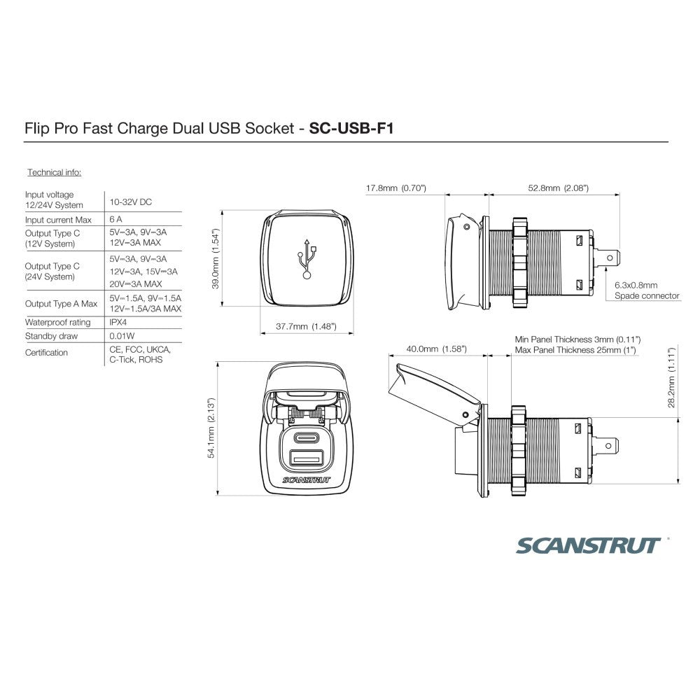Scanstrut Flip Pro Fast Charge Dual USB Socket (Rear Fit)