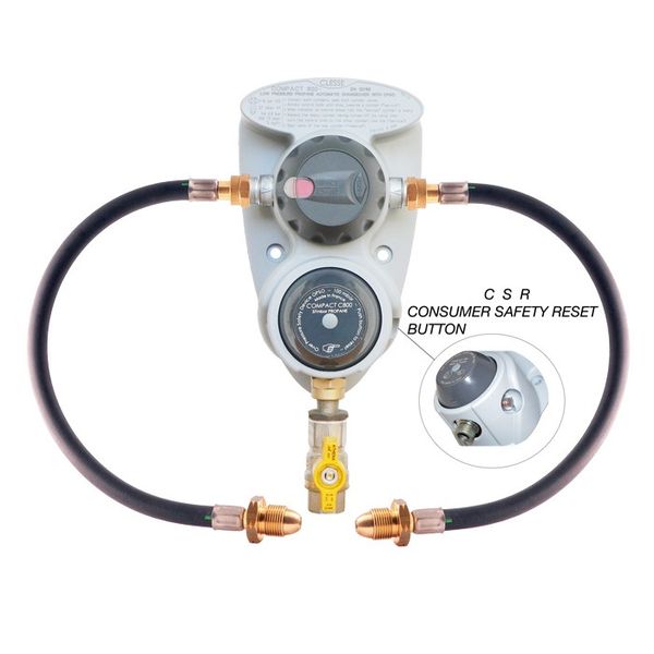 Automatic Changeover Regulators ensure continuous gas supply to onboard appliances. When the pressure in the supply cylinder falls, the changeover regulator switches automatically to the reserve cylinder. Automatic changeover regulators include an indication showing the cylinder supplying the regulator has changed over to the reserve cylinder. OPSO (Over pressure shut off) turns off supply in the event of system over pressure, CSR (Consumer Safety Reset) button for OPSO reset available on some models.