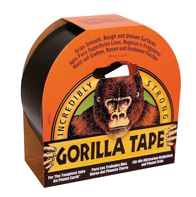 Introducing Gorilla Tape Black - 48mm x 11m. This premium adhesive tape has been created to seamlessly fuse difficult surfaces, creating a strong, permanent hold even on rough, uneven, or highly textured surfaces. Its superior strength and water-resistance make it ideal for use both indoors and outdoors. Featuring a superior reinforced backing combined with a heightened adhesive layer, Gorilla Tape Black is the ultimate premium solution.