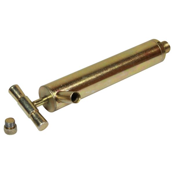 Patay sump pump. Passivated steel, capacity 77cc per stroke. Commonly fitted by UK engine manufacturers. Dimensions: Height (closed): 240mm Height (extended): 335mm Barrel Diameter: 32mm Spout Projection: 75mm Inlet: 3/8" BSP Male