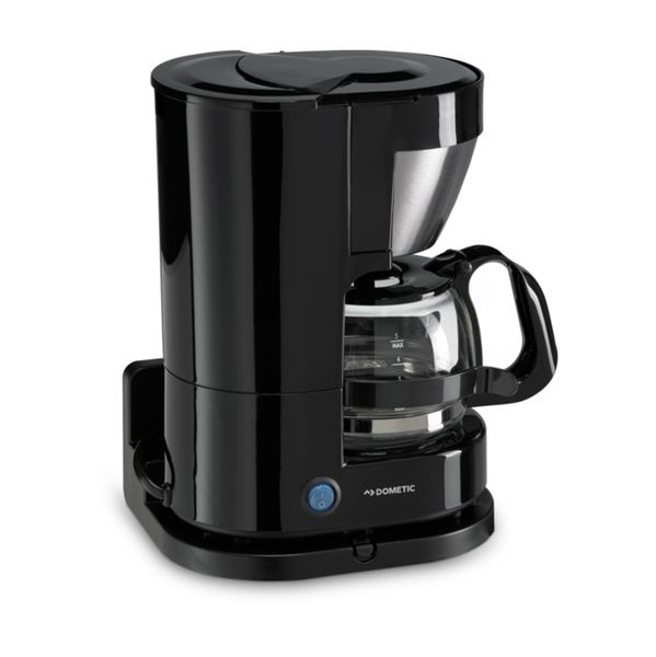 Dometic MC 052 12-volt coffee maker is designed for mobile use and makes up to five cups of freshly-brewed coffee at a time. It is fitted with an easy-to-access swing filter and a glass pot.