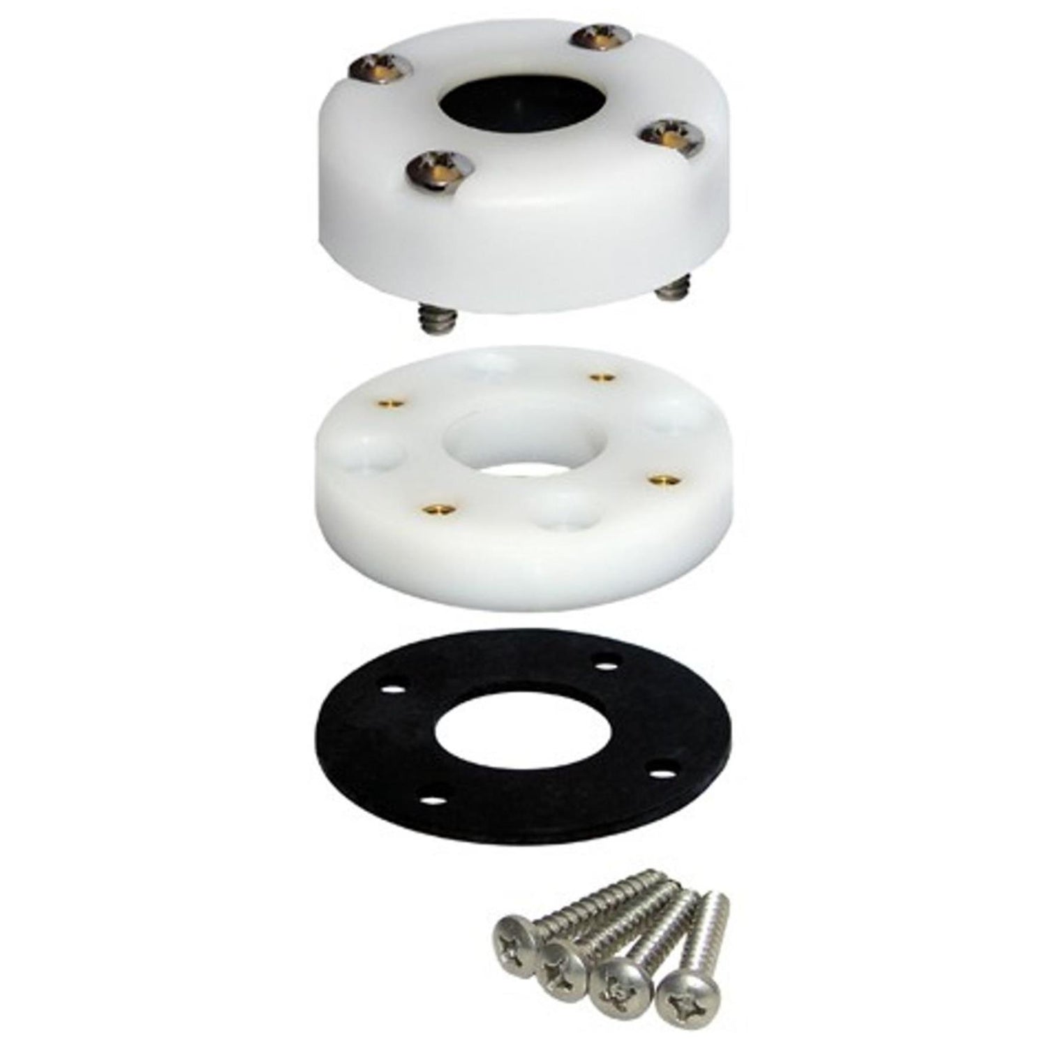 Provides a waterproof pass-through for antenna cables without requiring removal of the factory installed connector. Save the expense or removing & replacing connectors Avoid poor connections from removing factory connectors Use 8-21001 for GPS antenna cables, 8-21002 for VHF antenna cables and 8-21003 for Radar antenna cables. Includes all fasteners Specifications: Ring: UV-Stabilized Thermoplastic Seal Material: UV-Stabilized Buna-N Rubber Screws: Stainless Steel Mounting Holes: 8-21001 accepts #6 x 7/8" S/S Screws 8-21002, 8-21003 accepts #8 x 7/8" S/S Screws