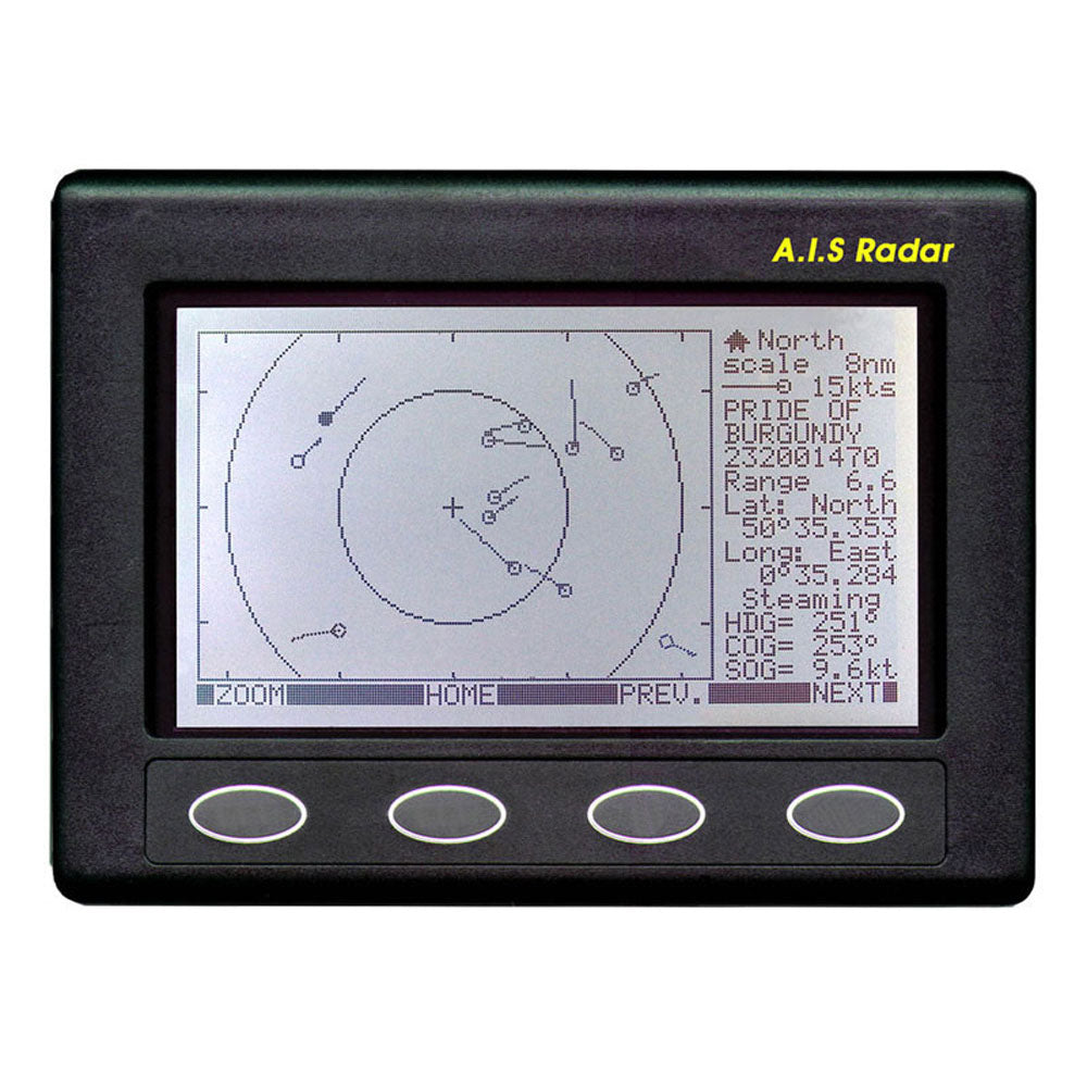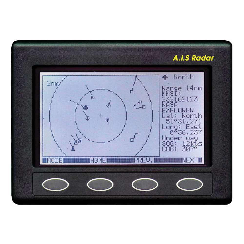 The Nasa Marine AIS radar is the first stand alone AIS receiver / plotter specifically designed for the leisure boat market. The unit consists of a dual frequency AIS receiver demodulator signal processor and a backlit matrix display. It receives an NMEA input (RMC) from the boats GPS which puts the user at the centre of a radar style screen. A COG pointer is selectable by the user. All AIS carrying vessels and SART transponders are displayed with bearing and range relative to the user. Any vessel on the screen can be selected by the user. The selected vessel is highlighted and its data displayed on the right of the screen. This data includes the vessel\'s MMSI number name course over ground speed over ground range latitude and longitude.