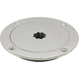 The Osculati deck access plate is made from marine grade cast stainless steel 316 with a mirror polished finish and is supplied with an O ring seal. The threaded cap features a multi-socket which can be opened and closed with a quarter turn of a winch handle. This deck plate has an opening diameter of 95mm.