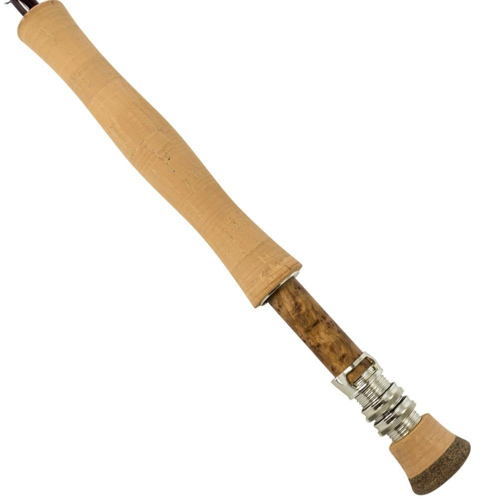 The lightweight aluminium reel fittings have a hard anodised silver/gold finish and feature stunning maple burl wood inserts. This beautiful wood displays a range of colours and grain patterns making each rod quite unique and individual. The rich bronze colour of the blanks is complemented by self-colour whippings with a subtle single band of bronze whipping.