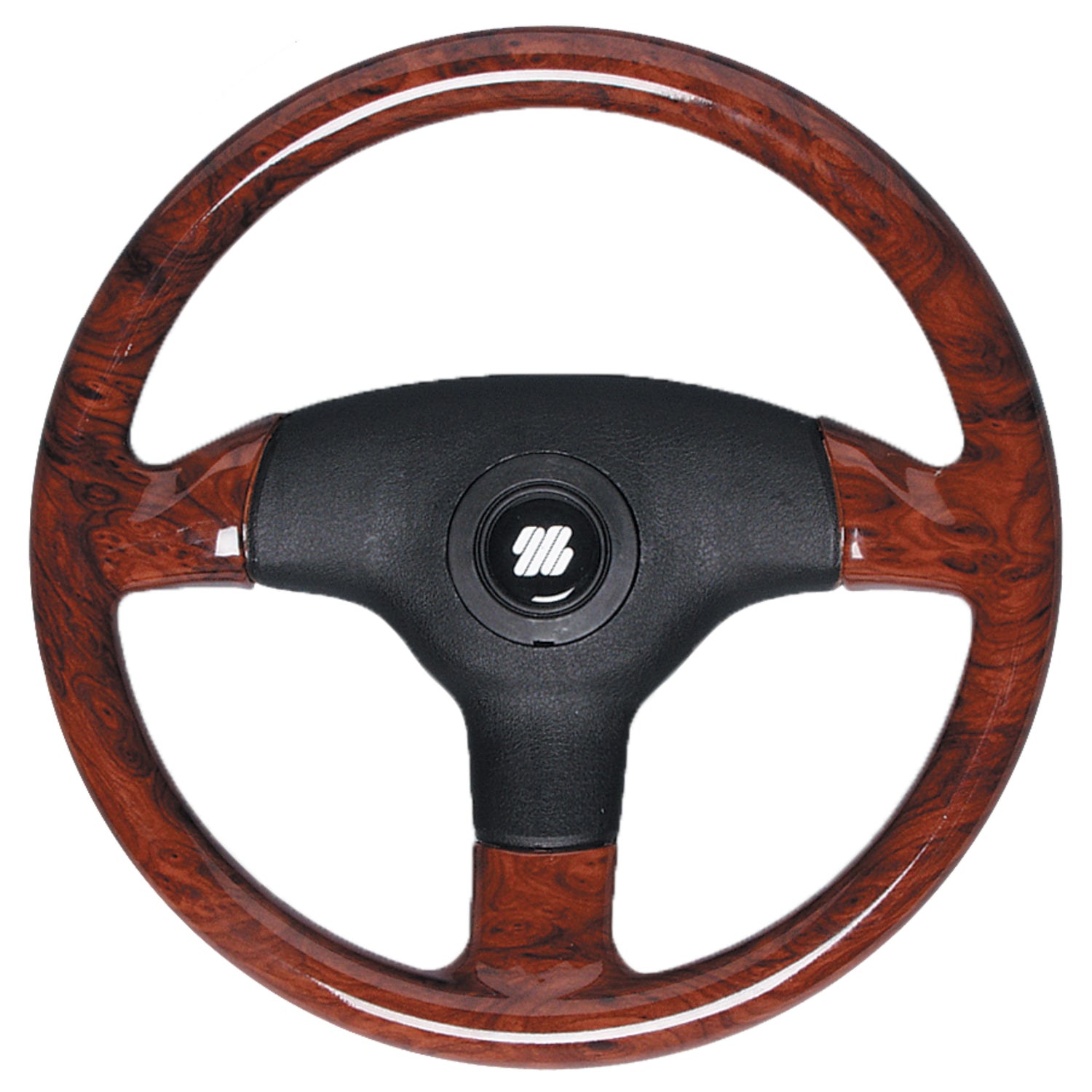 3 spoke Antigua steering wheel made from thermoplastic anti shock material with briar look hard grip rim, black hub and black spokes. This wheel measures 350mm (13.8") in diameter, 85mm (3.3") dish depth and features a standard 3/4" taper. All Antigua steering wheels are provided with an exclusive patented hub that easily allows the steering wheels to always be aligned properly.