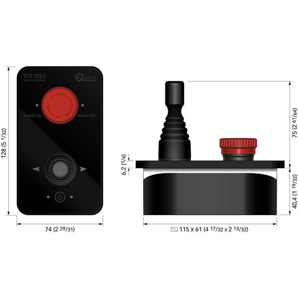 The Quick TCD 2062 remote control panel system has been designed to control the stern and bow thrusters. Ideal for operating the Quick BTQ thrusters through a joystick and integrated main switch command.
