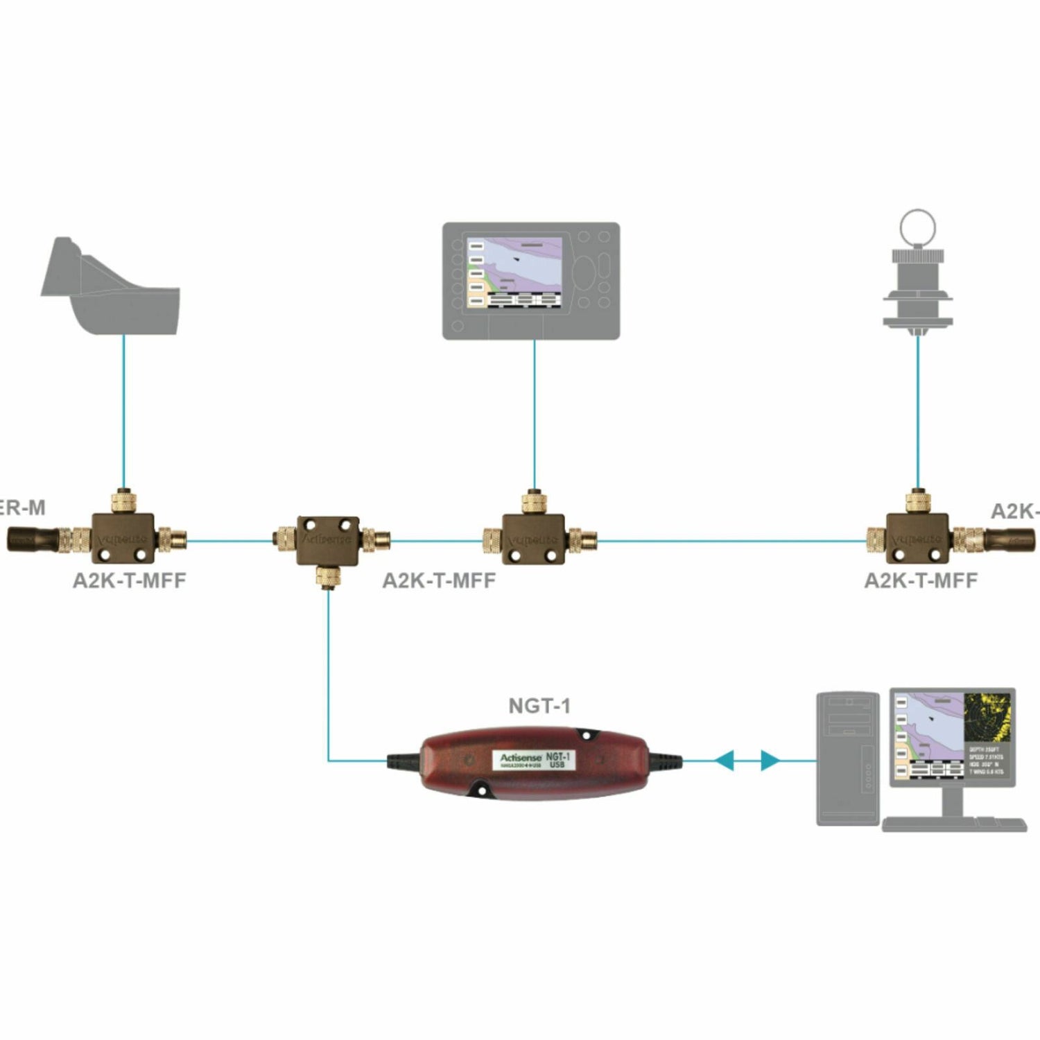 The diagnostic NMEA Reader software allows viewing of NMEA 2000 messages with configuration options, enabling some set-up of Actisense products on the NMEA 2000 bus.