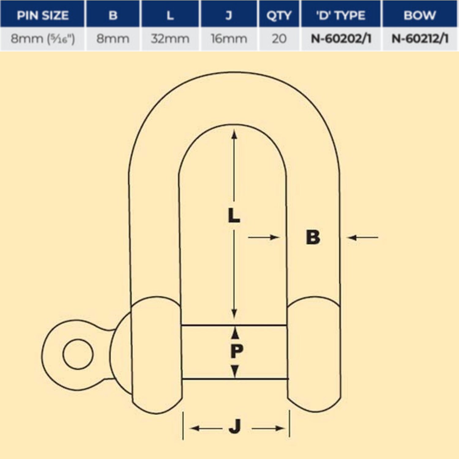 AG Galvanised Bow Shackle commercial grade 8mm (5/16").