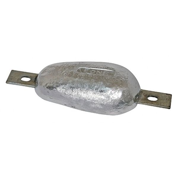 Zinc Pear Shaped Anode Length: 165mm Width: 100mm Height: 42mm Hole Centres: 200mm Strap: 250mm x 25mm x 5mm Weight: 3.0kg