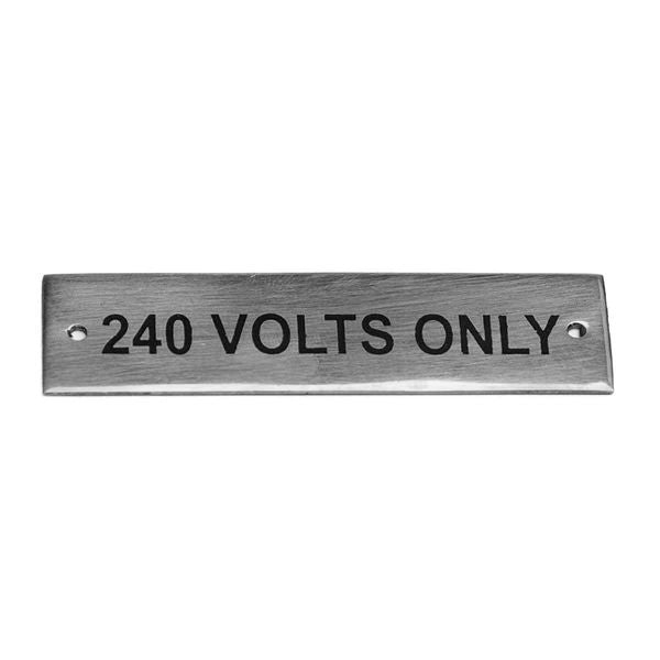 Chrome screen-printed '240 Volt Only' label 57 x 12mm.