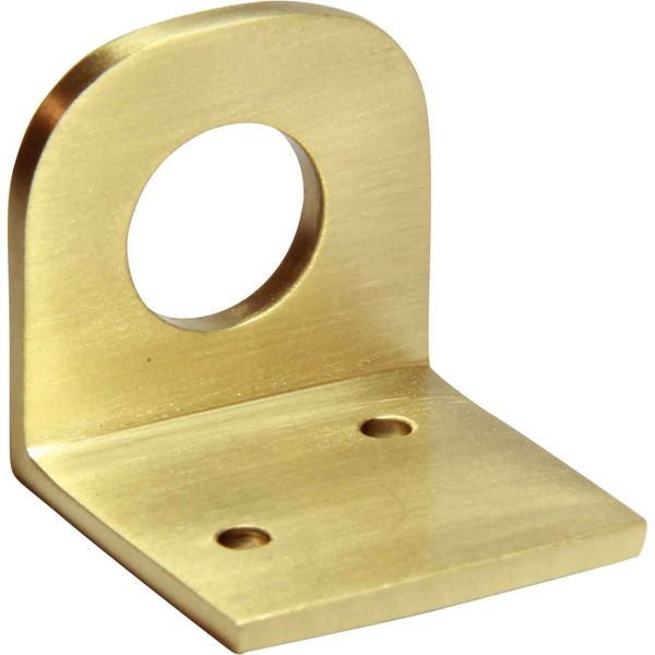 Brass Right Angle bracket drilled for compression fitting, securing when threaded into valve, at each end. Two hole base fixing.