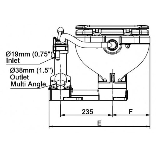 Slotted base fixing holes allowing easy and flexible replacement of many toilet makes including Jabsco & RM
