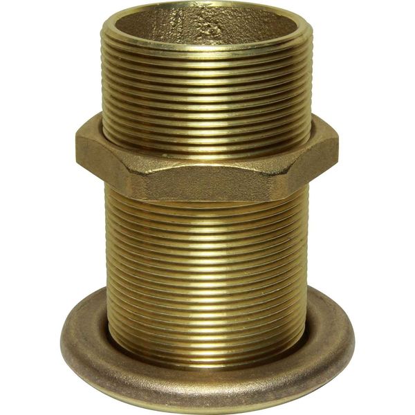 Maestrini threaded skin fitting made from dezincification resistant brass (DZR), also known as CR brass which stands for corrosion resistant. This material is a brass alloy which prevents corrosion, caused by the loss of zinc in the fitting, making it suitable for exposure to sea water. A skin fitting connects to a threaded pipe and is designed for through hull applications. This skin fitting features a traditional domed head style and is supplied with a brass fixing nut and washer.