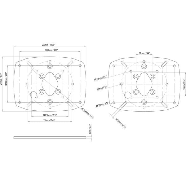 Scanstrut DPT-S-PLATE-01 satcom mounting plate for Dual PowerTower applications. The Modular Dual PowerTower has been designed to allow your radar & satcom with or without navlights to be mounted together, creating a off the shelf custom mount that is perfect for your boat. - Pre-drilled mounting holes allow the radar to fasten straight to the PowerTower with its own mounting bolts - Marine sealant not required - Paint finish complies with their unique 4 step marine paint system - Range of accessory light bars can be bolted to the back of the PowerTower for different GPS, VHS & Navigation light configurations