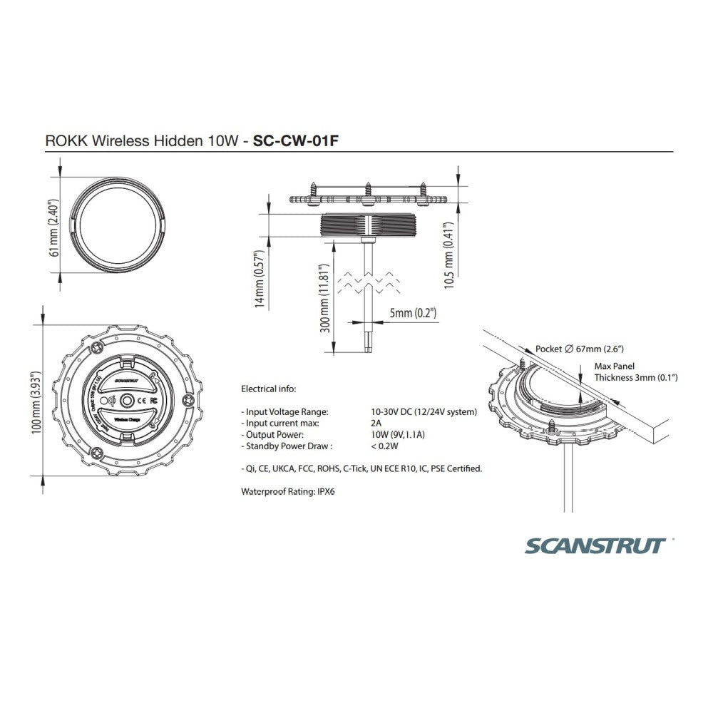 ROKK Wireless - Hidden 10W Waterproof Wireless Charger 12/24V