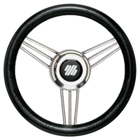 Ultraflex V99 Portofino 3-Spoke Boat Marine Steering Wheel Soft Grip - 350mm / Hub - Black & Chrome
