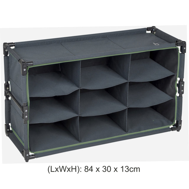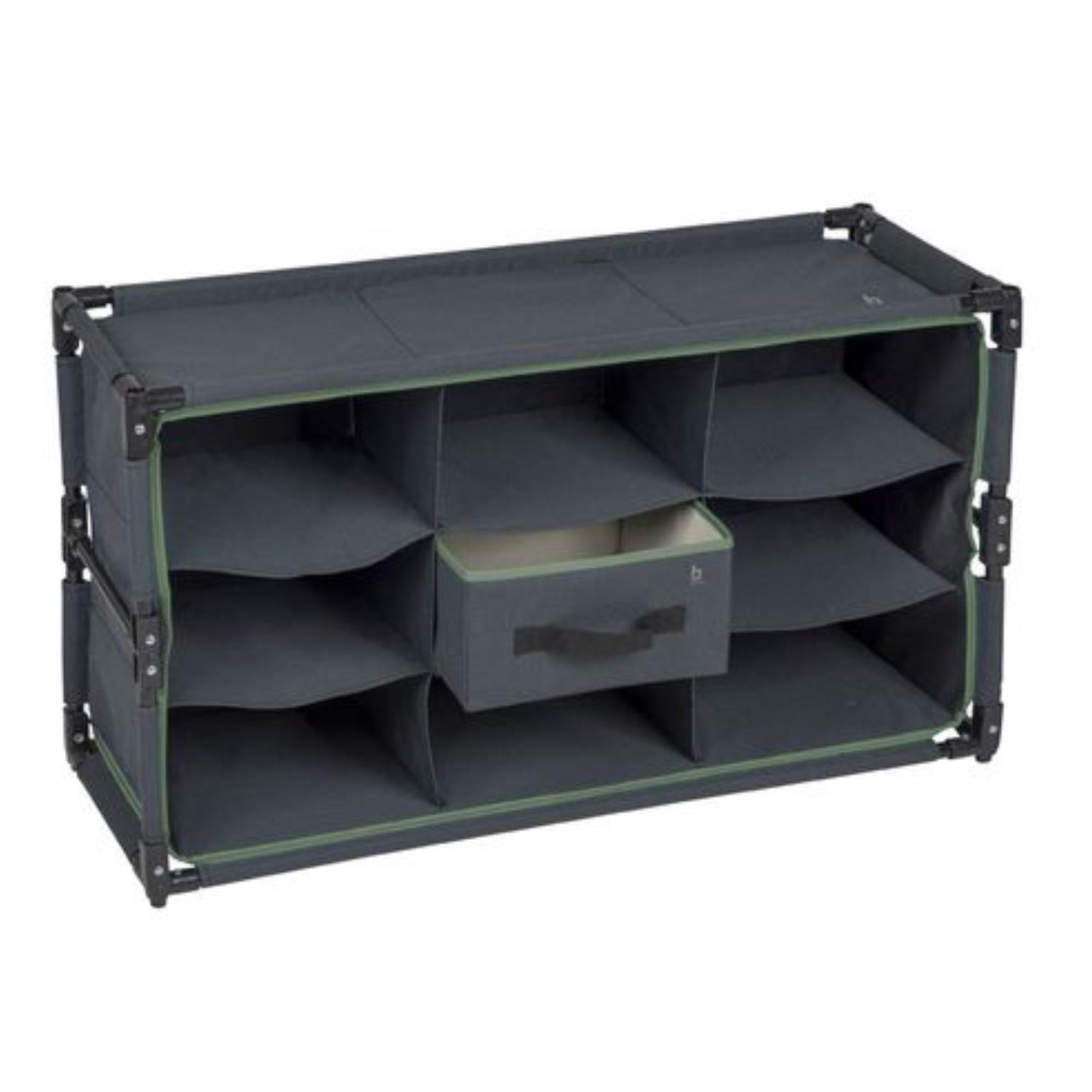 A multi-functional and folding compartment cabinet. Has 9 compartments where you can optionally place a drawer (not included).