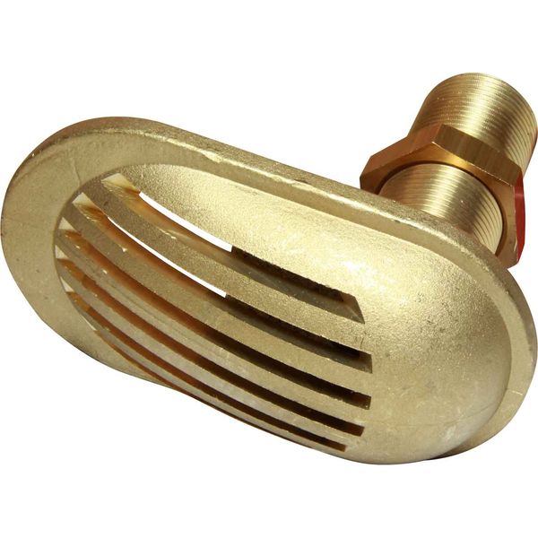Maestrini scoop strainer made from brass, with an oval shaped grating. This scoop is designed for raw water intake systems, such as those used for engine coolant. It fits through the hull with the grating on the outside and the male threaded pipe leading inside, usually to a valve to open and close the intake. The scoop grating can be secured to the hull using a marine sealant and is also fixed with a back locking nut and washer. Important note: All fittings used for through hull applications must be correctly electrically bonded to ensure protection from electrolytic corrosion. Brass is susceptible to dezincification and may not last as long as other materials in below waterline through hull applications.