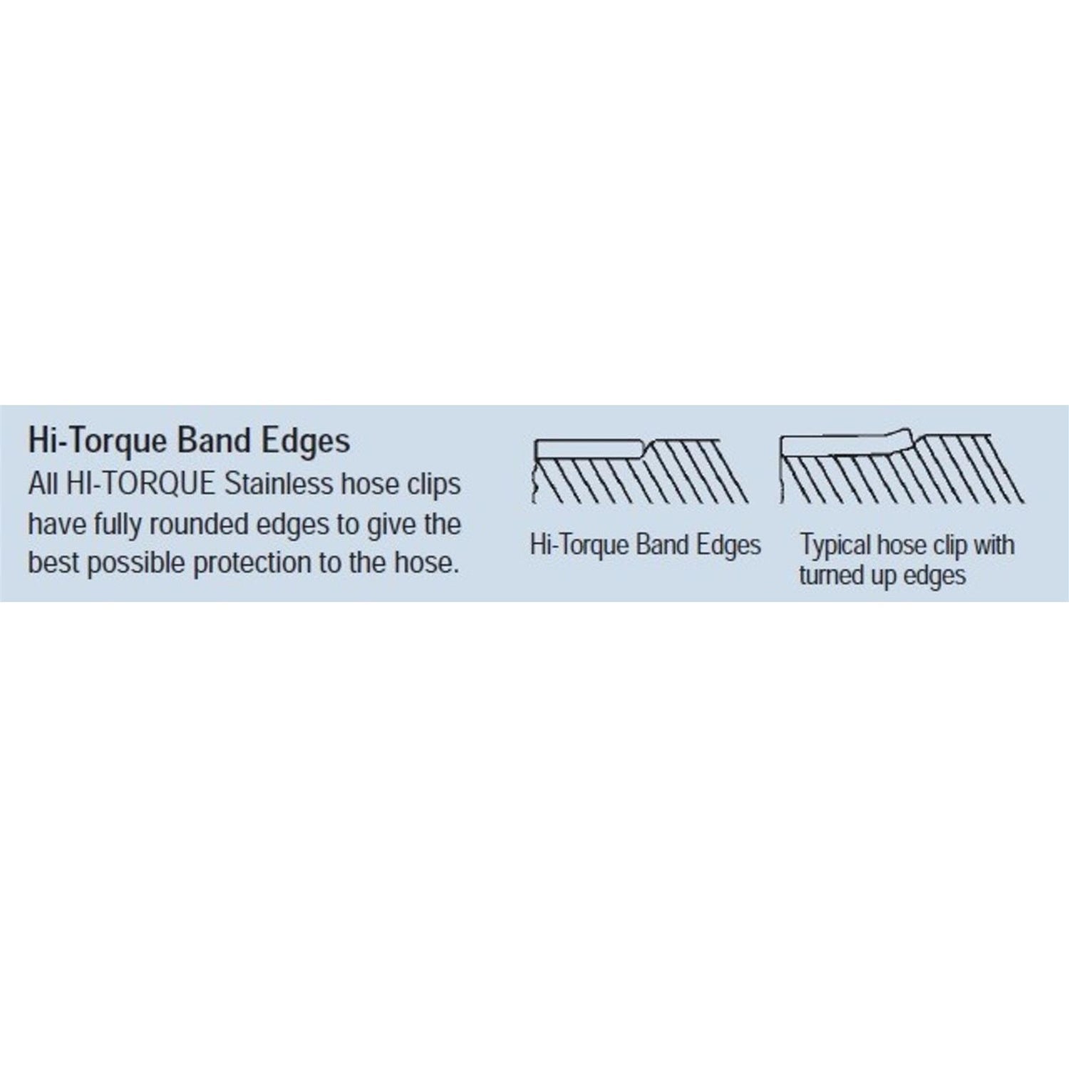 Specifically designed for tough wire-reinforced hoses and where an extra margin of safety and reliability is required. Hi-Torque clamps out perform nut and bolt type clamps due to: