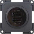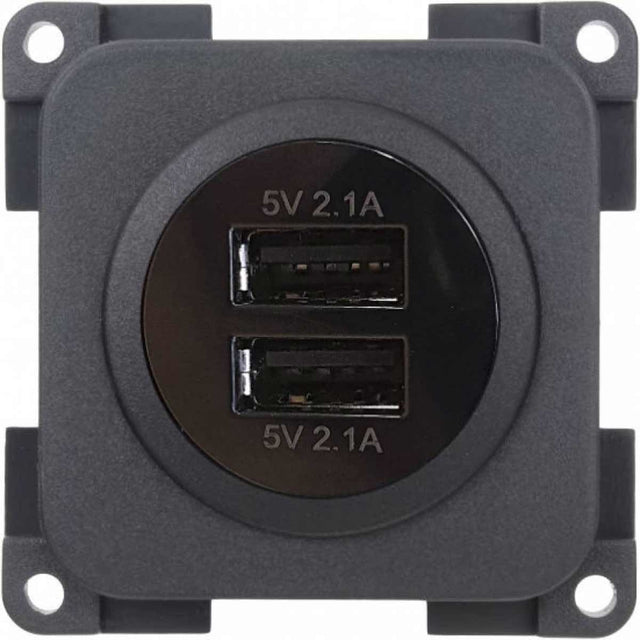 The double USB has 2.1 amp per output available, this has been mounted in a CBE plate and is pre-wired with 100mm tails ready to be terminated onto.