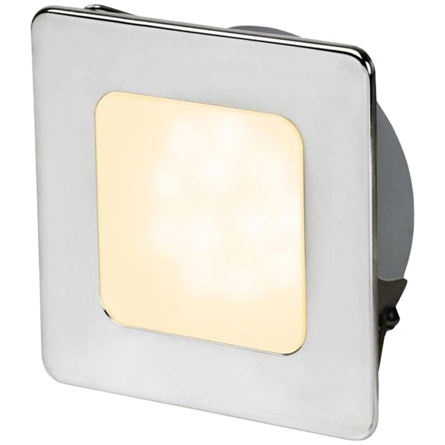The Hella EuroLED 95 series of cabin lights are designed to provide a broad, even spread of light in a stylish low profile body. The low power LED bulb offers power and heat reductions on board, whilst being a durable, solid state light which you can rely on. The EuroLED 95 is supplied with a 120mm length of marine grade electrical cable and can be fully controlled and dimmed via Voltage Resistive or PWM dimming products such as ASAP Part Number 719195. The 2JA 958 340-521 model features a marine grade stainless steel 316 square outer rim. The light is installed into a 76mm diameter recess with spring clips. It provides white (2700K) light on 9-33V DC electrical systems. The light is completely sealed (IP 6K9K) and is covered by Hella's 5 year warranty for faults in material, components or workmanship. They are aimed to give a real 'fit and forget' solution to interior lighting.