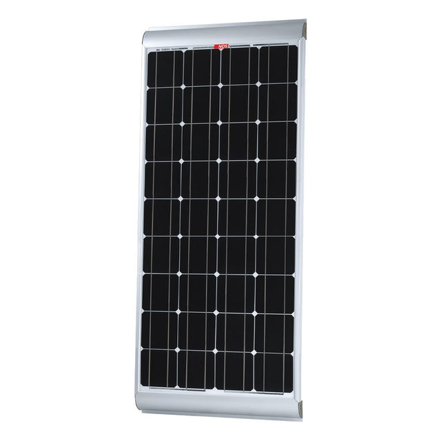 A 100W monocrystalline solar panel combining modern photovoltaic construction technology with a simple installation. The 1320 x 530mm panel has integrated aluminium brackets with aerodynamic plastic side covers, ideal for safe and simple installation on a motorhome. The integrated brackets ensure the panel is fixed at an adequate distance from the motorhome (or other mounted surface), which keeps the panel�s cells ventilated to help avoid any loss of performance, even at high operating temperatures. This monocrystalline solar panel is made up of textured tempered glass and high purity silicon cells coated with a Tedlar foil, all enclosed in two sheets of EVA (Ethylene Vinyl Acetate). The components used to coat the cells are designed to achieve maximum transmittance and transparency, plus the low iron content and anti-reflective coating increase efficiency to 18.05%. Special by-pass diodes protect the cells from overvoltages and allow the solar panel to continue working even in the event of shading and accidental breakage of the photovoltaic cells. From NDS�s SOLENERGY 12V range, this solar panel meets the most stringent quality and safety standards, IEC61215, IEC61730 and ISO9001/ISO14000 certification, and is built to withstand the harshest environmental and pollution conditions. - Number of cells: 36 - Max power: 100WP�3% - Open circuit voltage: 23.7V - Short circuit current: 5.5A - Max power voltage: 19.57V - Max power current: 5.11A - Length 6m cable: 2�2.5mm� Please Note: NDS Solar Panels come with a 24 month warranty from the date of purchase. Proof of purchase will be required for all warranty claims.