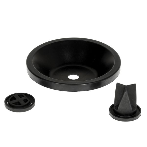 The neoprene pump diaphragm included in this kit measures 134mm in diameter and has an inside hole diameter of 15mm.